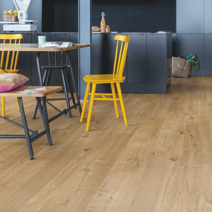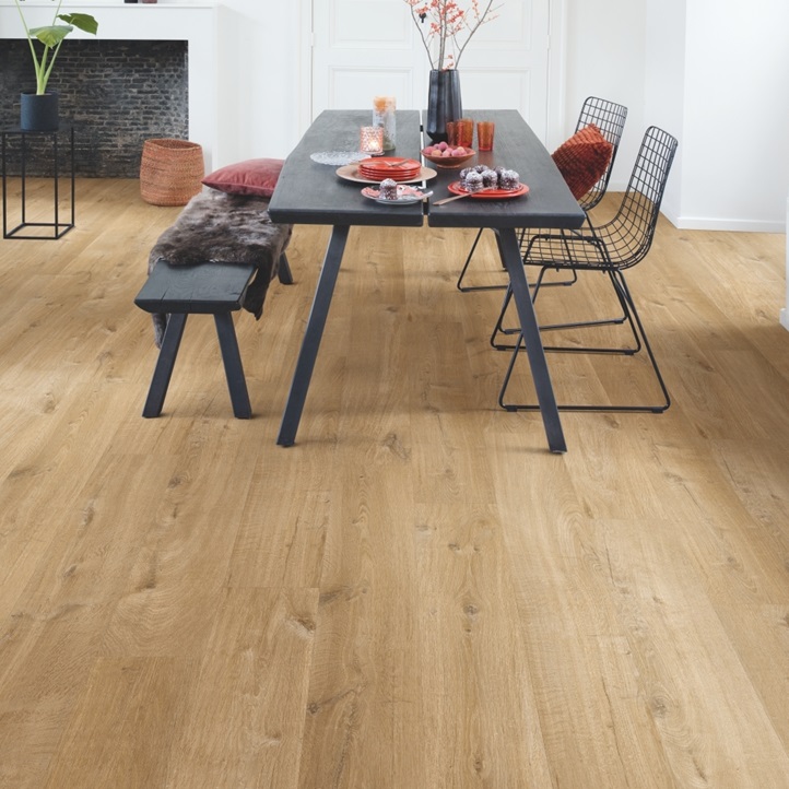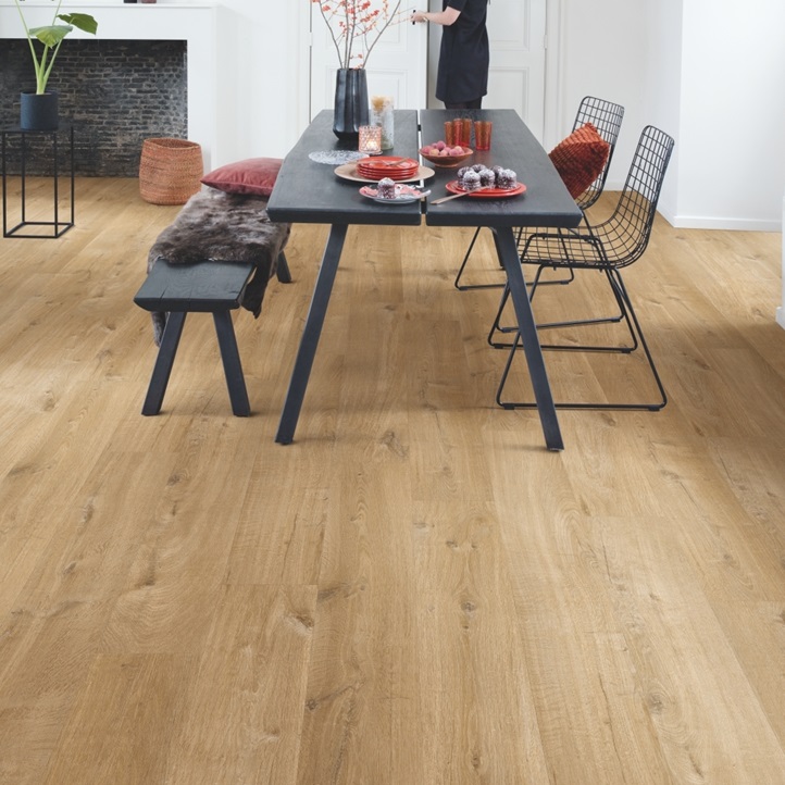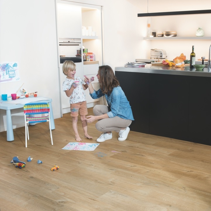 Попрощайтесь с проблемами залива водой, выбрав влагостойкий пол Quick-Step. Эти полы имеют исключительно стильный и естественный вид, а также на 100% устойчивы к влаге, поэтому их очень легко чистить!